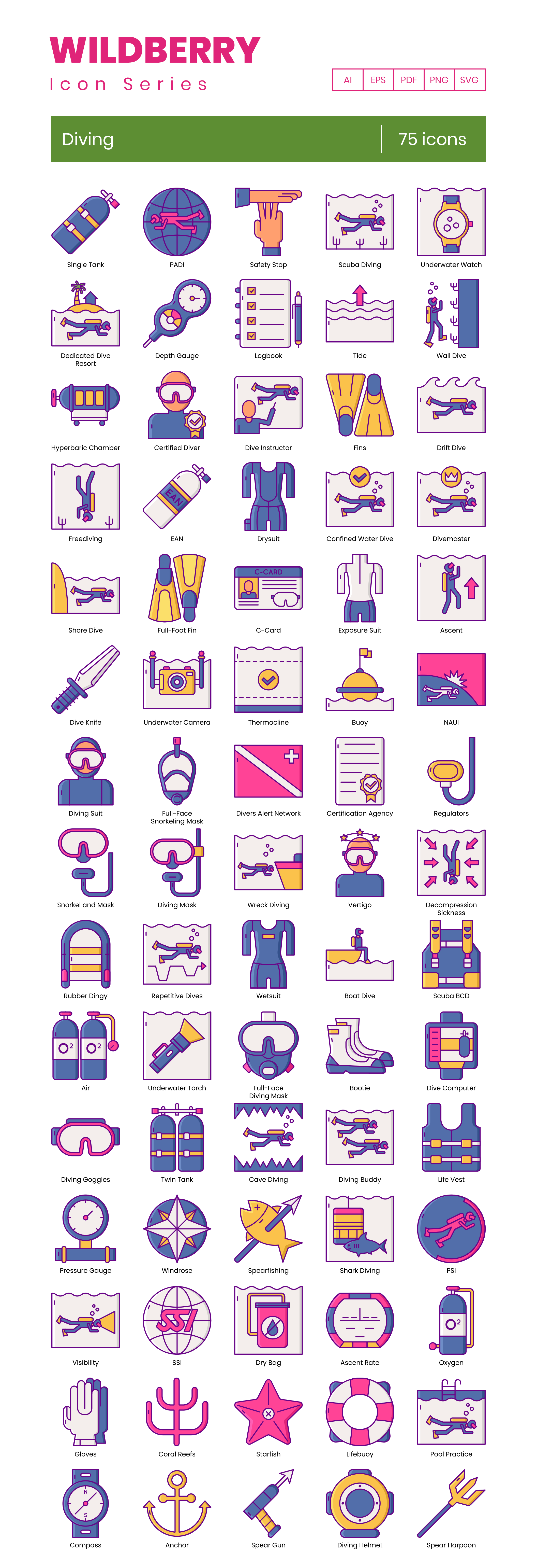 TL;DR: 75 Deep-Sea Diving vector icons. 5 formats, fully customizable. Find the full icon list below.