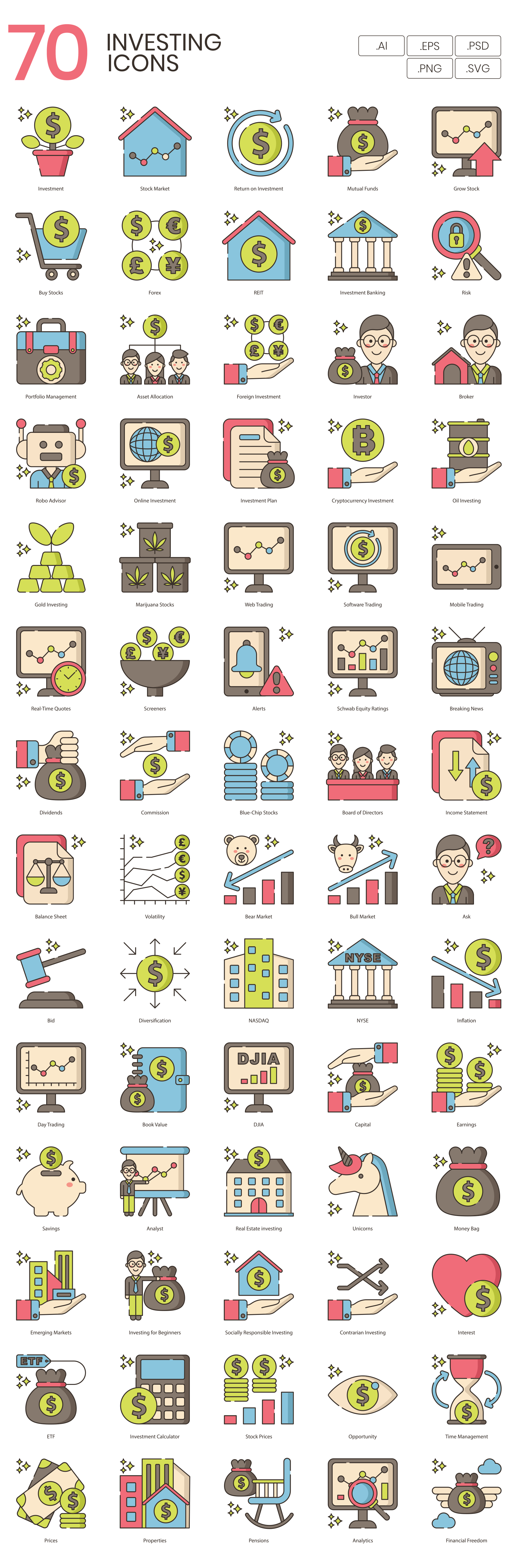 TL;DR: 70 Finance Growth vector icons. 5 formats, fully customizable. Find the full icon list below.
