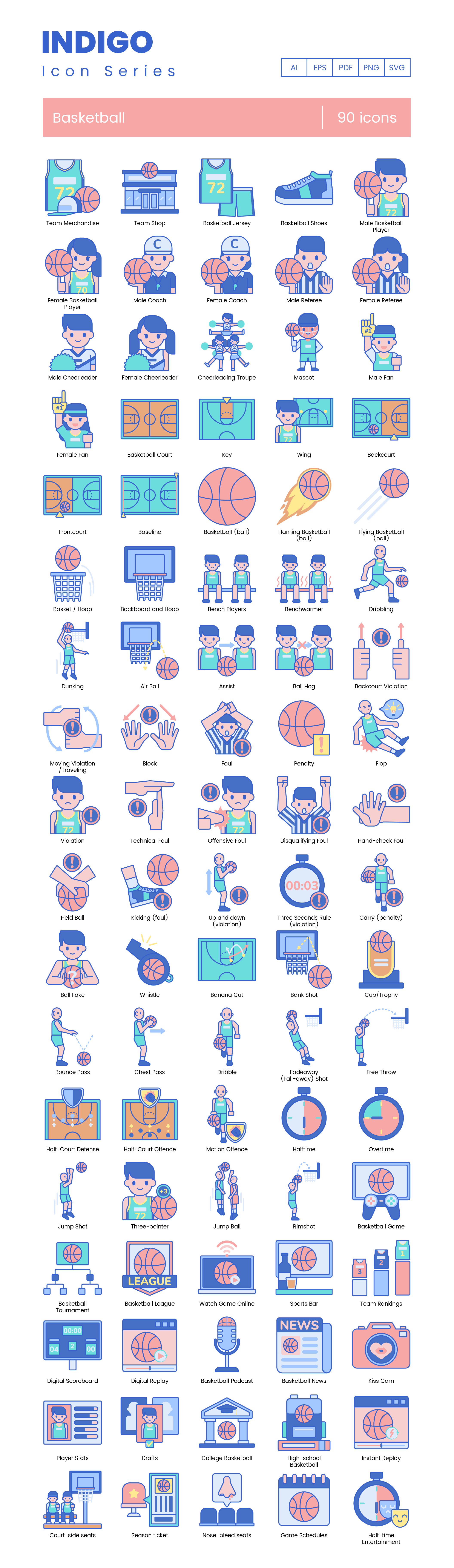 Introducing the 90 Hoops Icon Set. From basketballs and hoops to sneakers and scoreboards, this unique icon pack grabs everyone’s attention.