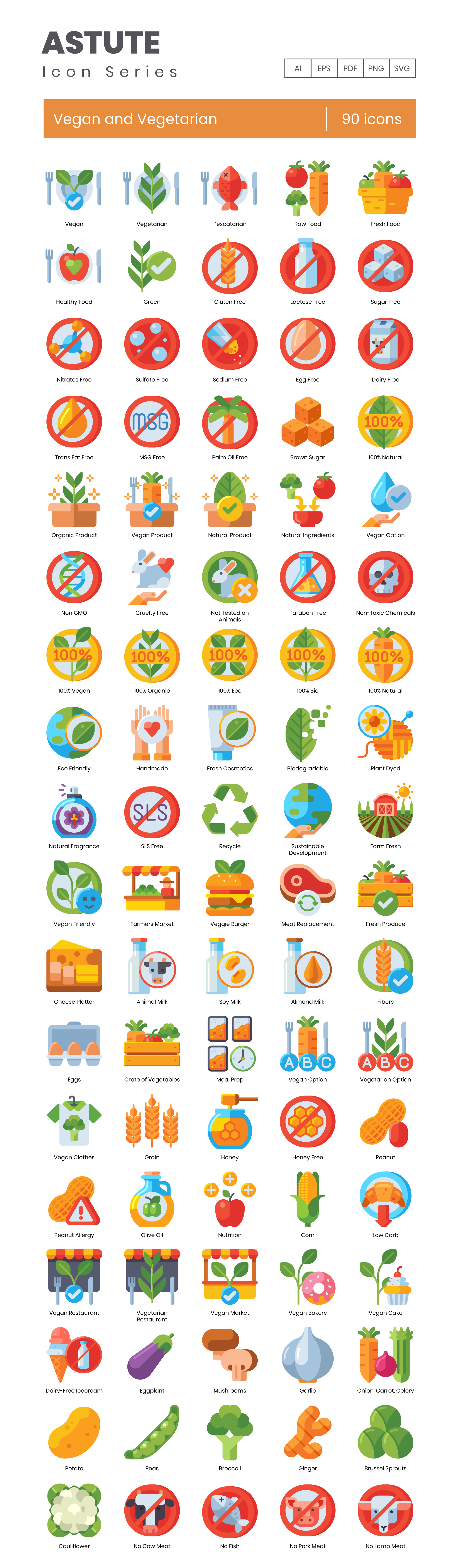 Looking to design menus, health apps, or food blogs focused on vegan, vegetarian, or organic options? Wish to highlight plant-based ingredients and dietary choices with engaging icons? We’ve got just the thing!