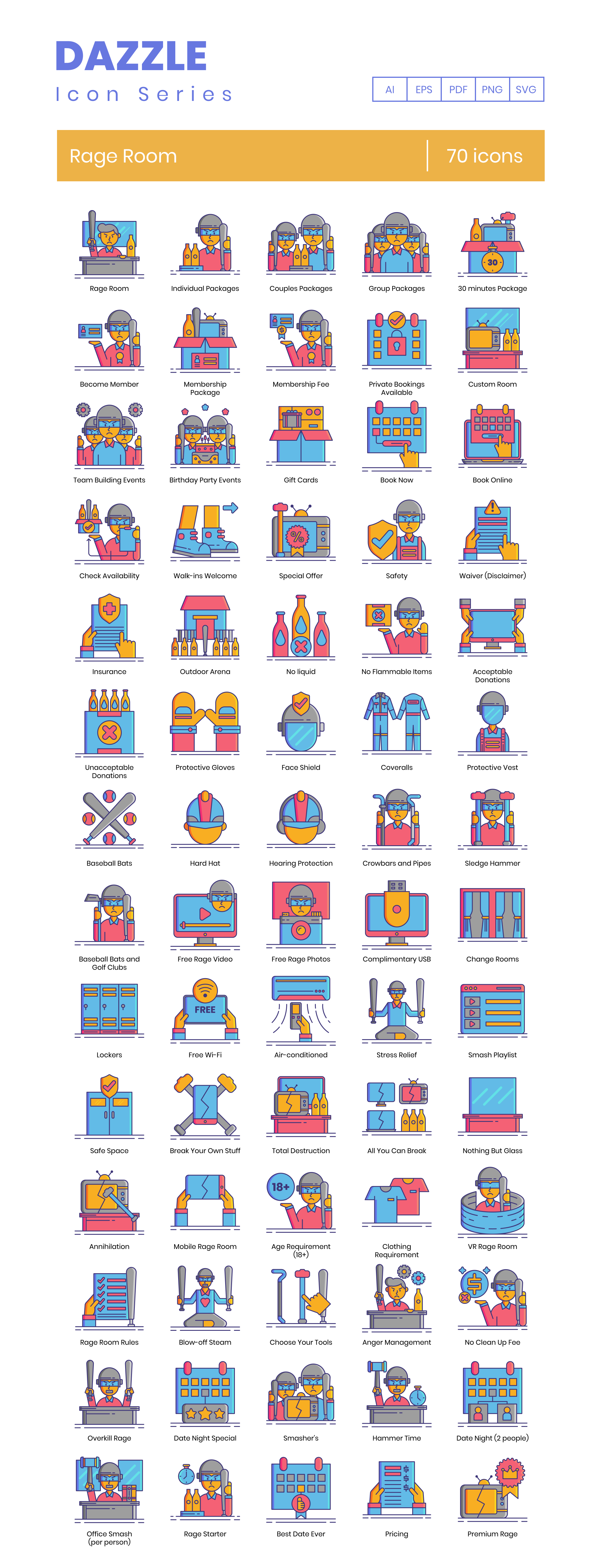 TL;DR: 70 Smash Room vector icons. 5 formats, fully customizable. Find the full icon list below.