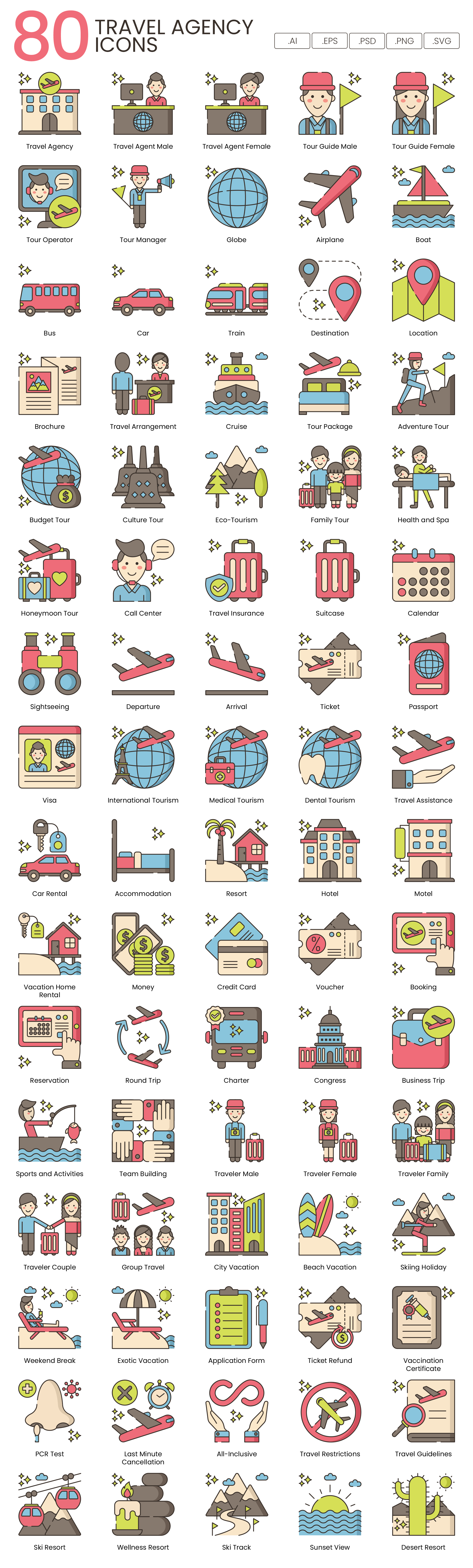 TL;DR: 80 Travel Agency vector icons. 5 formats, fully customizable. Find the full icon list below.